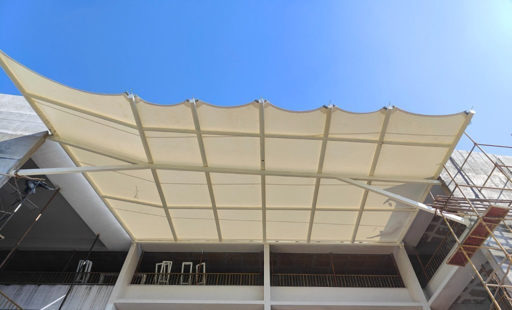 - آلاچیق پارک: سازه کششی با پارچه PTFE برای دوام بالا و شکلپذیری معماری.